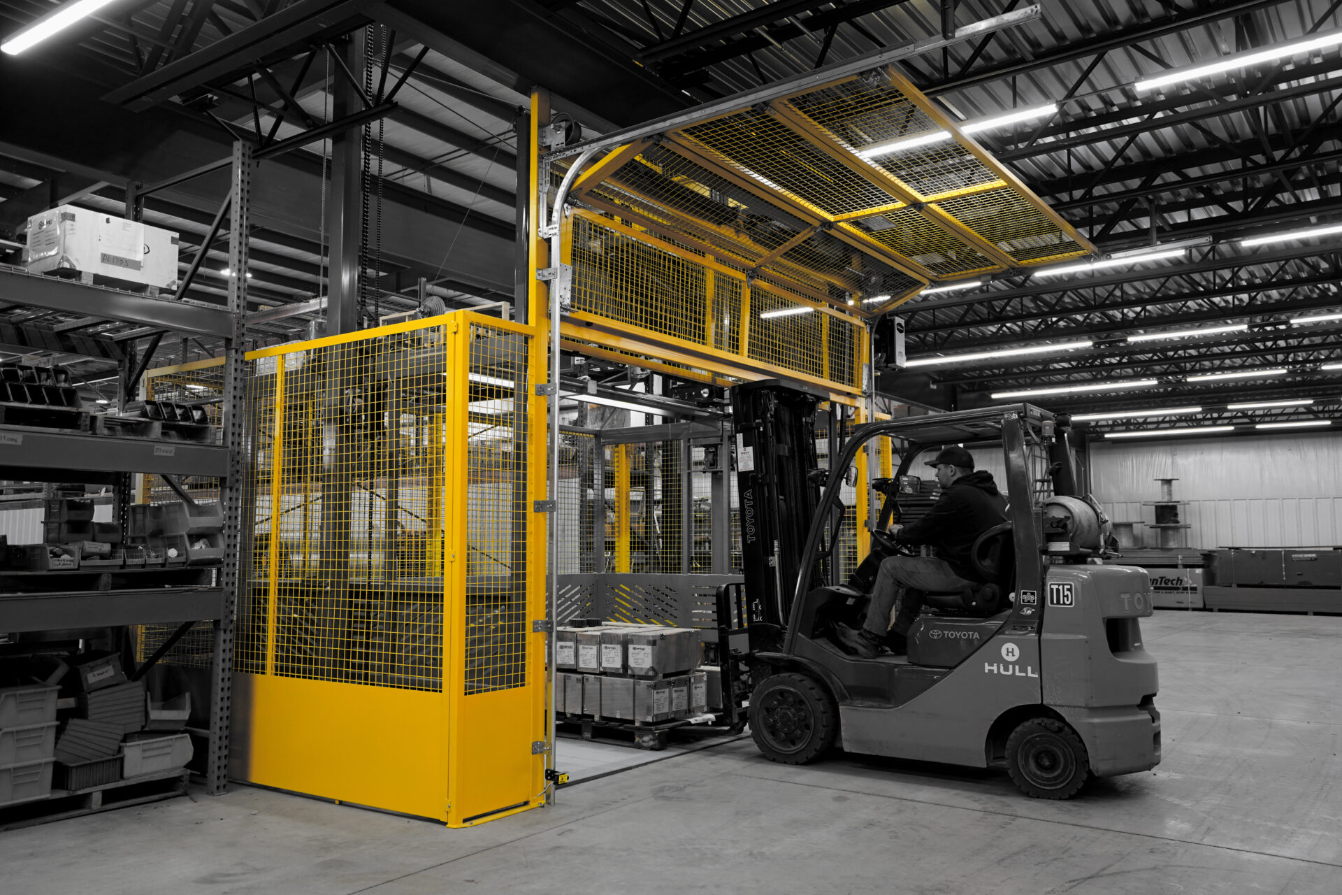 Our perimeter safety gates are designed to provide maximum security for loads as they transfer between levels, ensuring safe and efficient material handling. These gates automatically enclose the carriage perimeter during operation, preventing accidental spills or falls and protecting both personnel and materials.