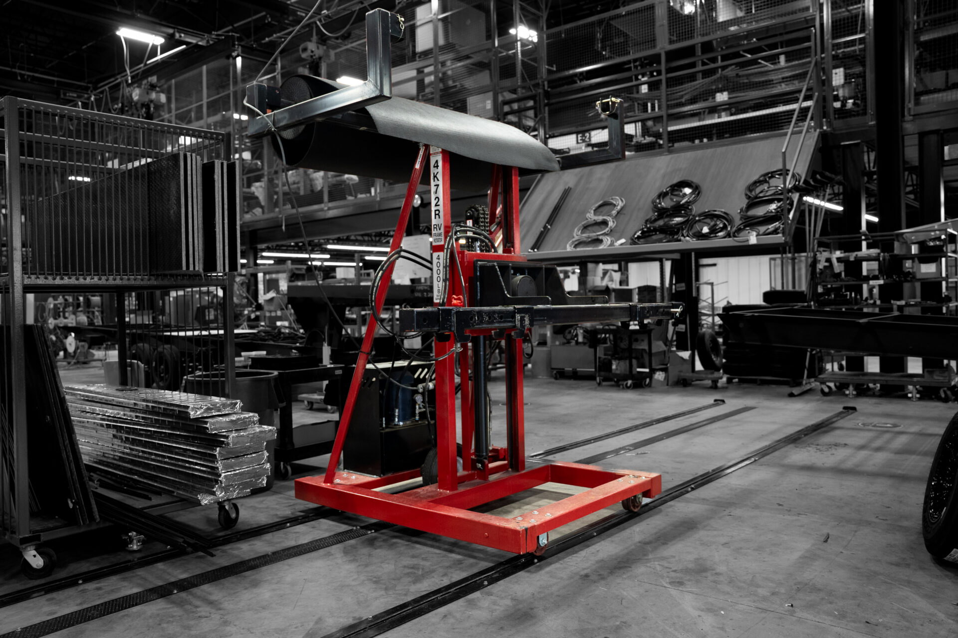 The Torque Frame Rotator is used for rotating the chassis of vehicles. It’s commonly used in the RV industry. The frame rotator gives workers easy access to the undercarriage to add or remove components. Workers will be able to work from above instead of under the frame.